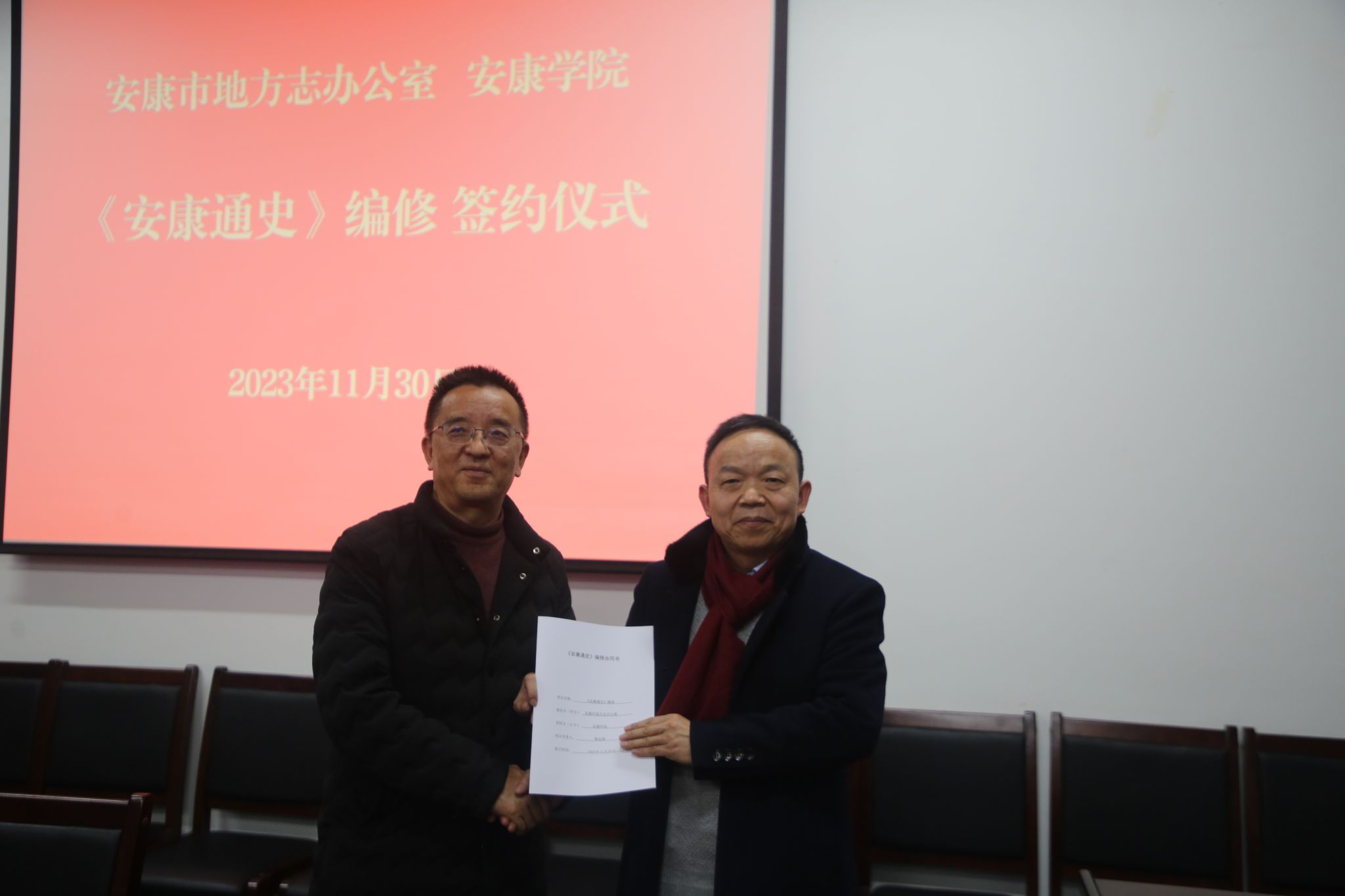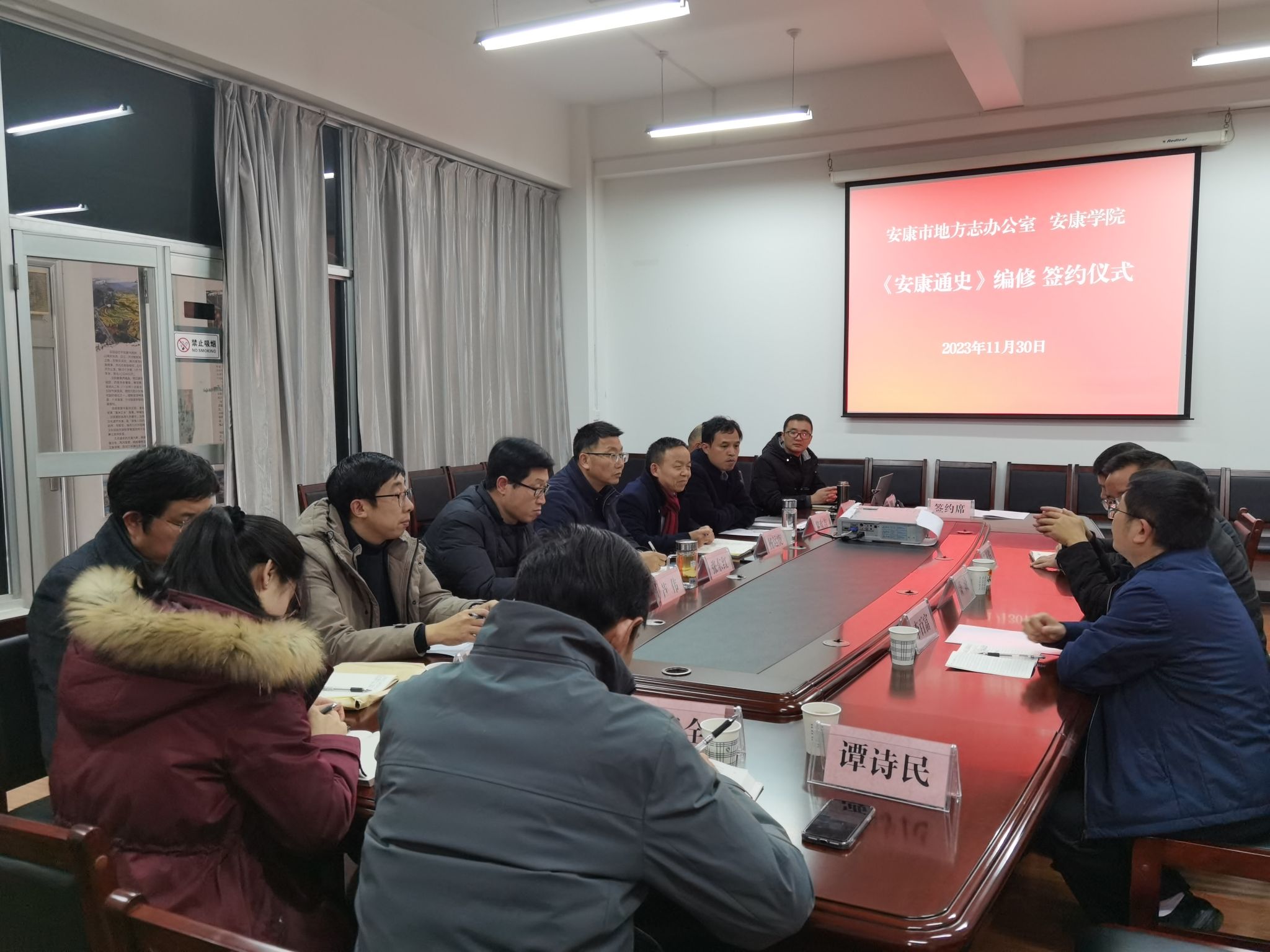 11月30日下午,安康学院和安康市方志办编修《安康通史》签约仪式在陕南民间文化研究中心会议室隆重举行。安康市方志办主任萧诚、副主任李百富、调研员薛正华和学校科研处副处长黎欢吉、pp电子游戏平台网站院长杨运庚、副院长曹刚及编写组成员共同参加签约仪式,学校党委副书记张东红出席仪式并作指导讲话。签约仪式由pp电子游戏平台网站党总支书记芦伟主持。