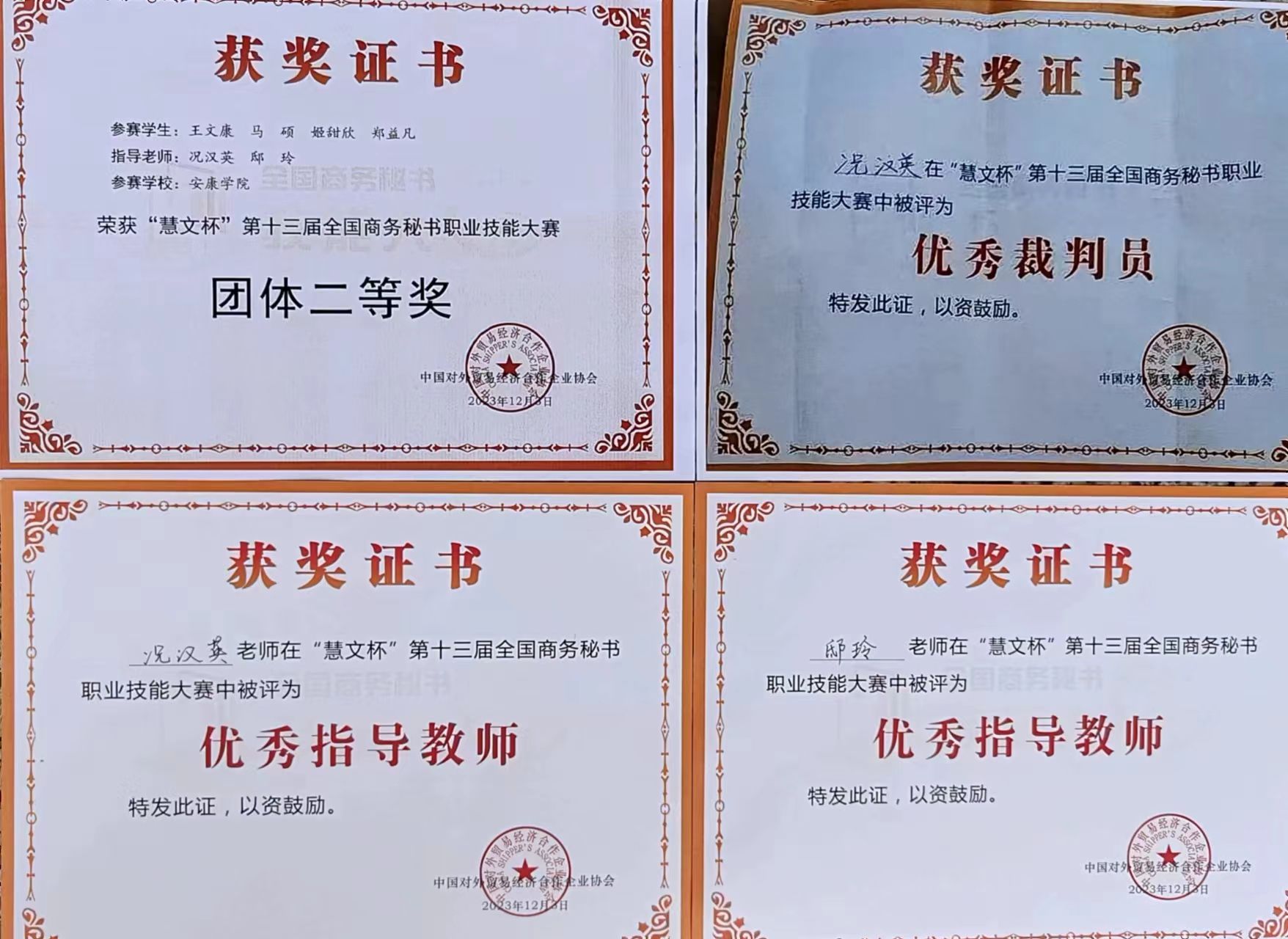 在本次大赛中,pp电子游戏平台网站代表队成绩在陕西省本科院校代表队中名列前茅,充分反映了我校在秘书学专业教育领域的教学实力和学生的综合素养。况汉英老师和邸玲老师荣获“优秀指导老师”称号。pp电子游戏平台网站将继续努力提升教育教学质量,向社会培养和输送更多具备专业知识和实践能力的高素质综合型秘书人才。