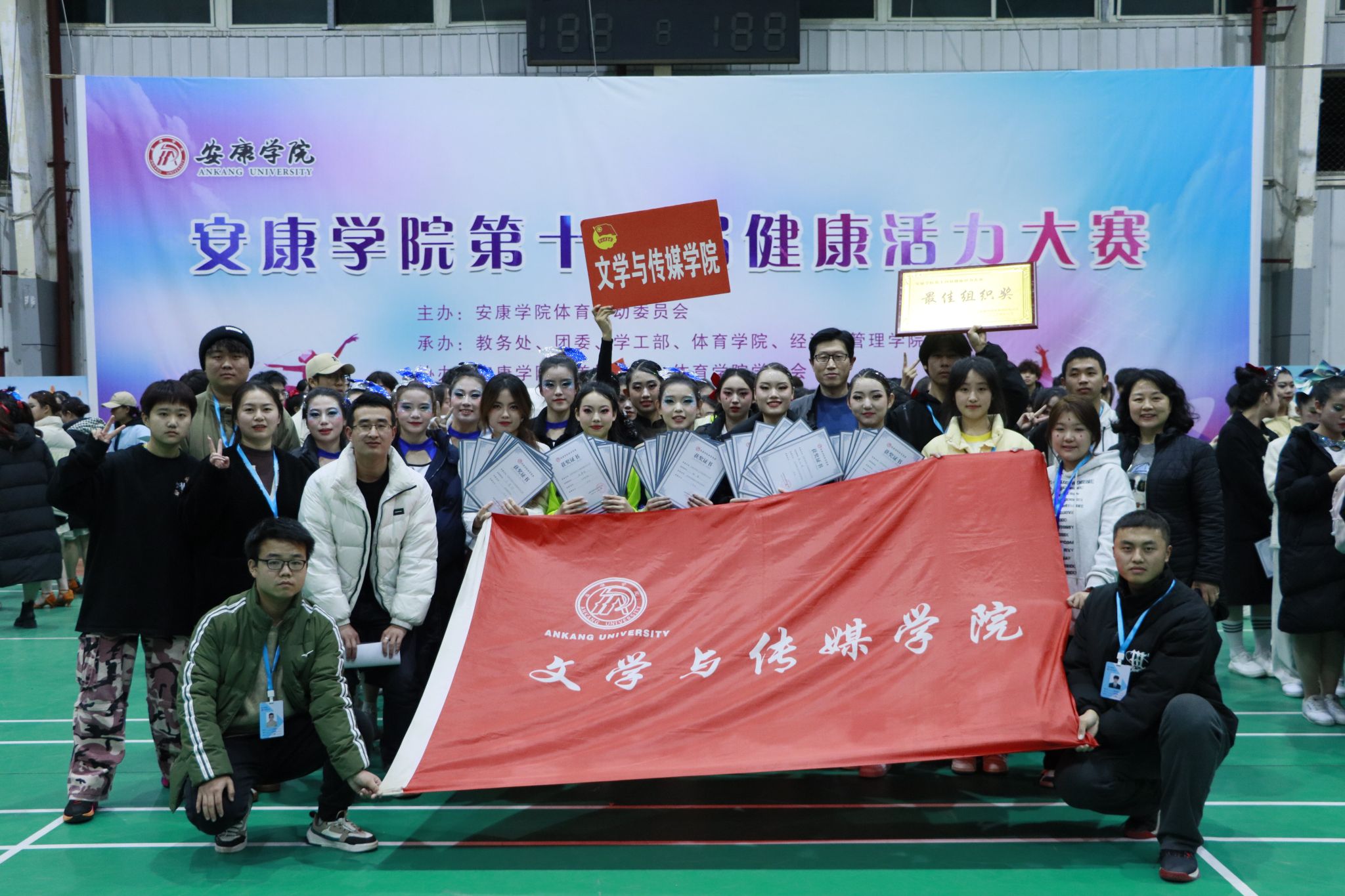 2023年12月8日下午,pp电子游戏平台网站体育运动委员会主办的第十四届健康活力大赛决赛在江南校区体育馆圆满落幕。pp电子游戏平台网站代表队在本次大赛中荣获最佳组织奖,团体项目斩获多项荣誉:体育舞蹈伦巴一等奖、校园青春健身操一等奖、体育舞蹈恰恰一等奖、花球啦啦操二等奖、健身排舞二等奖。