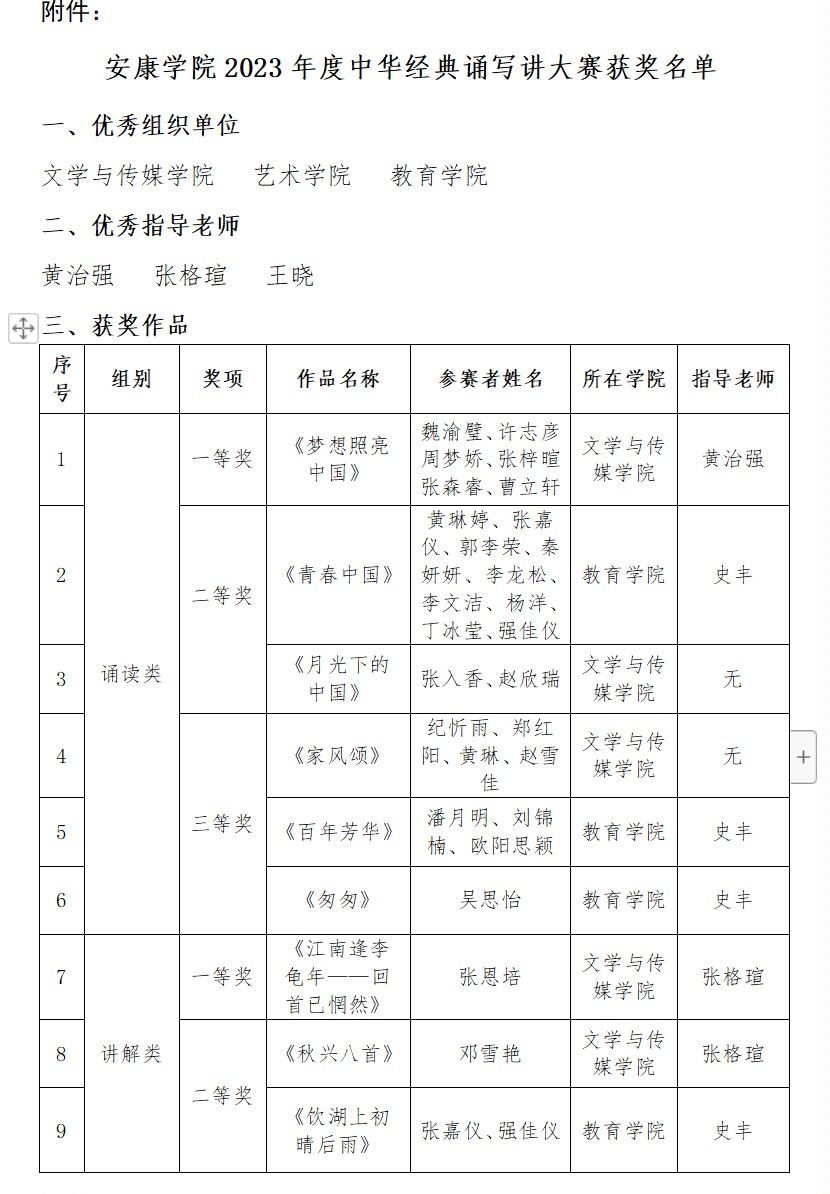 pp电子游戏平台网站在2023年度中华经典诵写讲大赛中成绩突出,荣获诵读类一二三等奖各一项;讲解类一二等奖各一项,三等奖三项;书写类一等奖一项,三等奖两项。黄治强、张格瑄荣获优秀指导老师荣誉。pp电子游戏平台网站被评为优秀组织单位。在此向获奖师生予以祝贺!