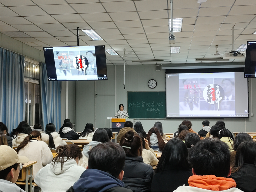 2024年3月6日晚上19点30分,pp电子游戏平台网站演讲辩论社在我校江南校区十号教学楼1014教室开展了“是否能以成败论英雄”为主题的国际大专辩论赛的观摩活动。参加本次活动的有演讲辩论社全体成员。