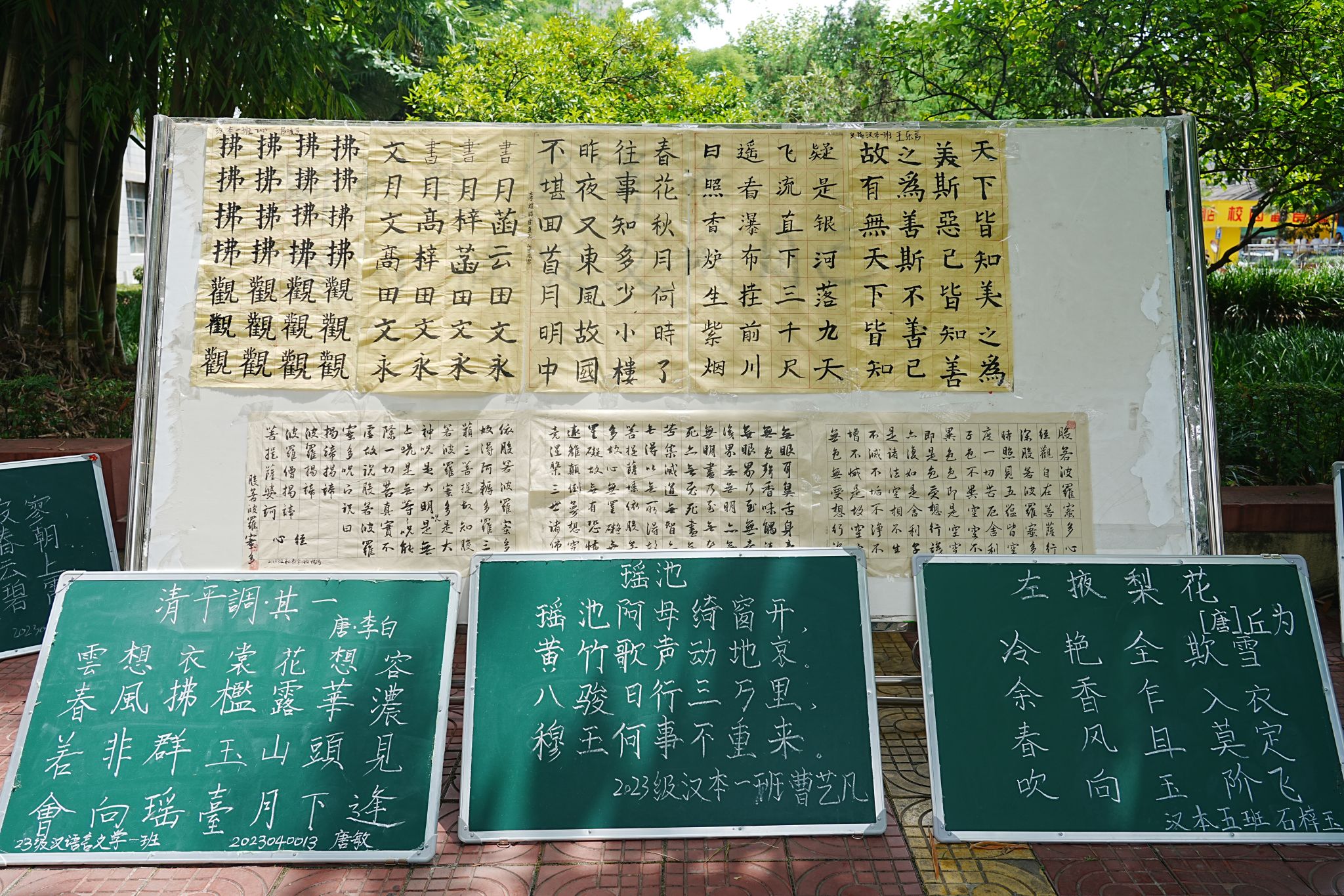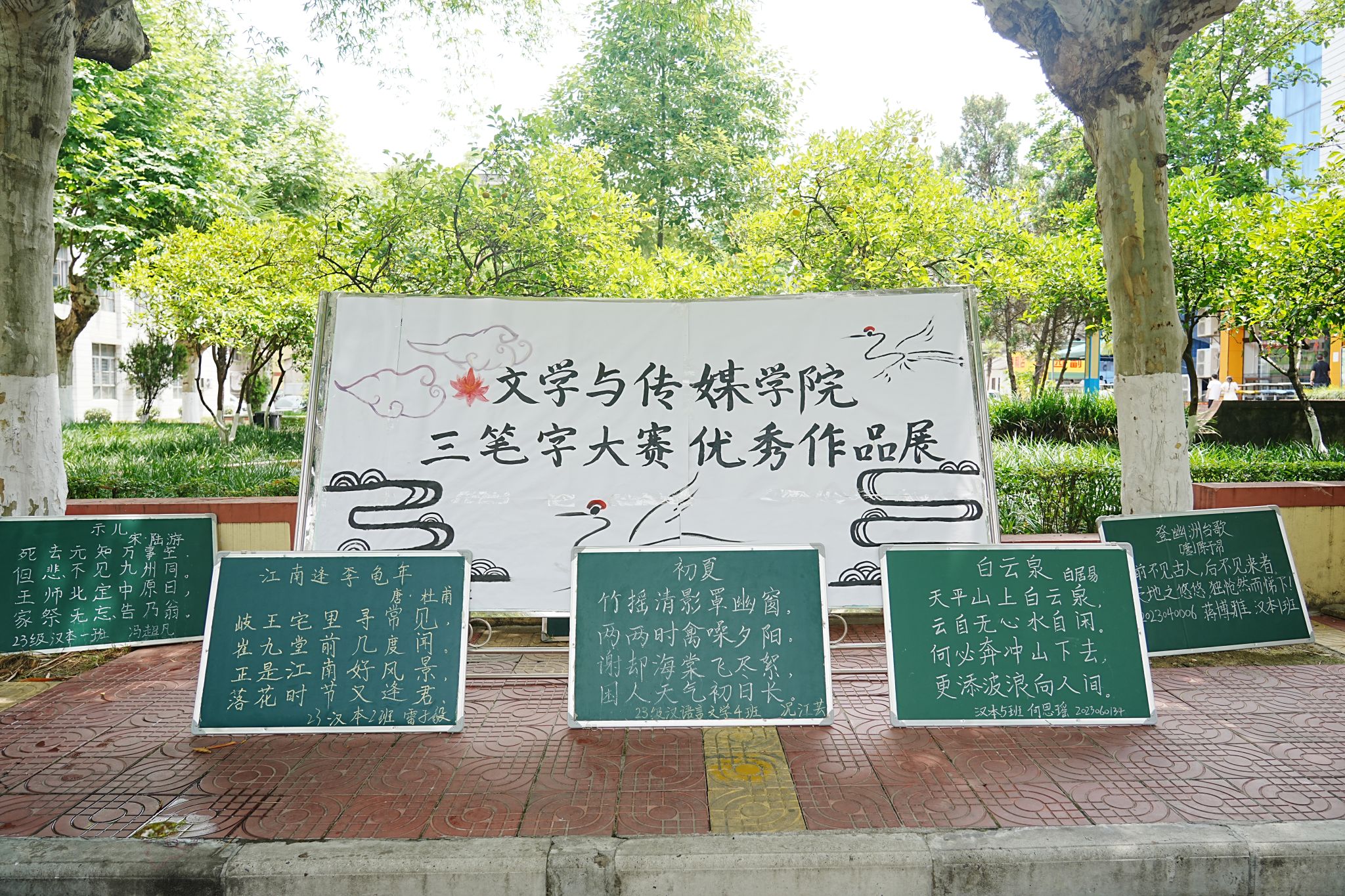 本次大赛收集参赛作品分为硬笔、毛笔和粉笔三个类型。比赛展示期间,学生提交的所有作品分别摆放在校园林荫道的两旁和学院楼道内,一幅幅作品有的端庄严谨,有的清新秀丽,有的圆转流畅,展现出学生扎实的书写基本功;作品中有经典流传的圣言之道,有脍炙人口的古代诗词,有气势磅礴的革命诗句,也有民间传统优秀家训,内容跨越千年题材丰富多样。5月28日上午,经过评委们的认真评选,最终按类别评选出一等奖6名,二等奖9名,三等奖12名,优秀奖8名。