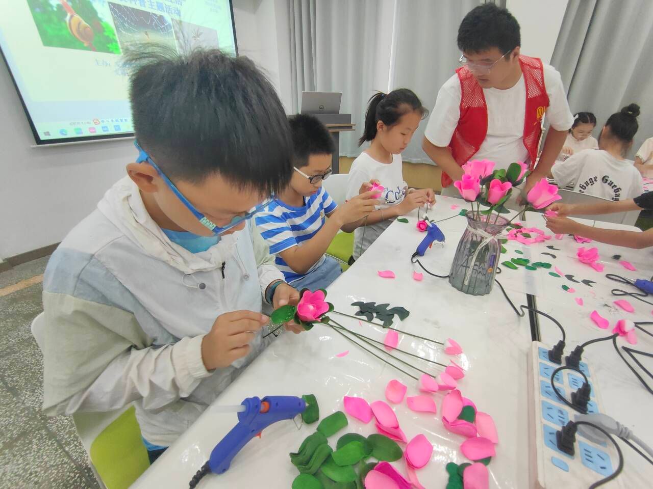 2024年6月1日下午,安康市图书馆联合东莞市成铭热熔胶博物馆在安图报告厅举办“热熔胶”科普暨“六一”青少年儿童手工制作活动,活动邀请了东莞市成铭热熔胶博物馆馆长王贤胜作为主讲嘉宾。pp电子游戏平台网站派出四名志愿者参与志愿服务,协助活动开展。