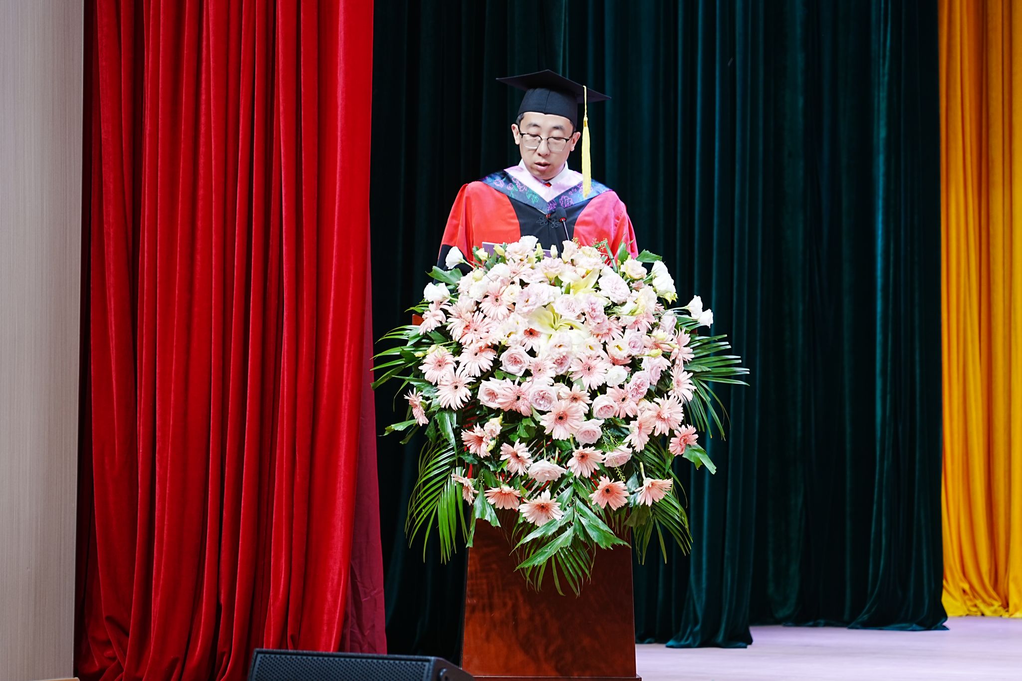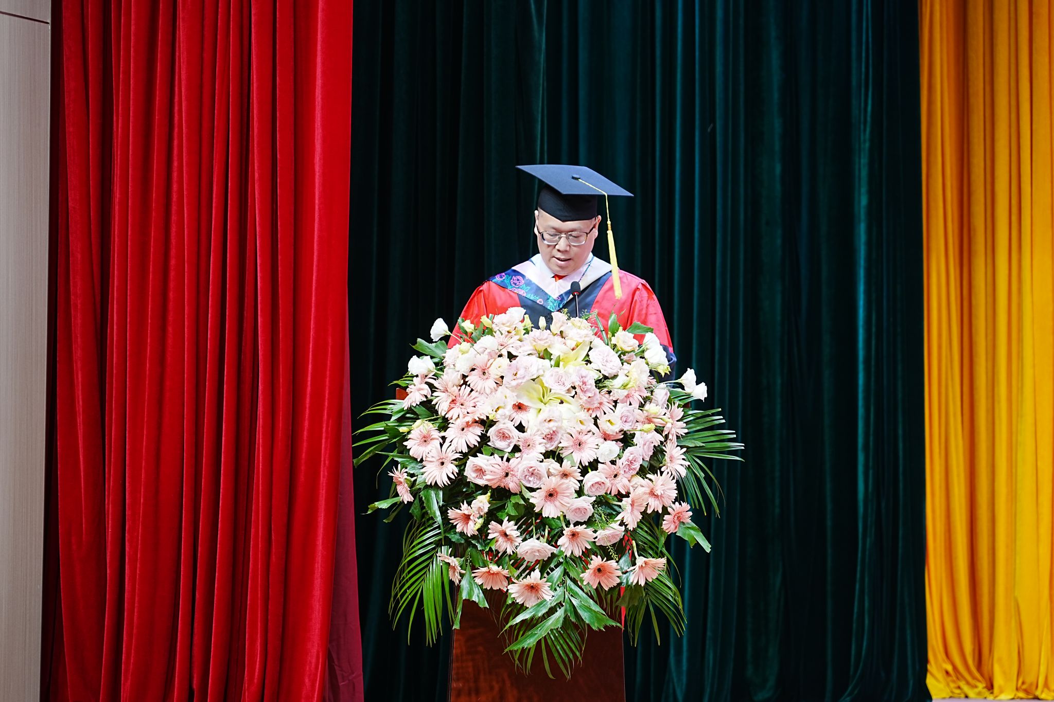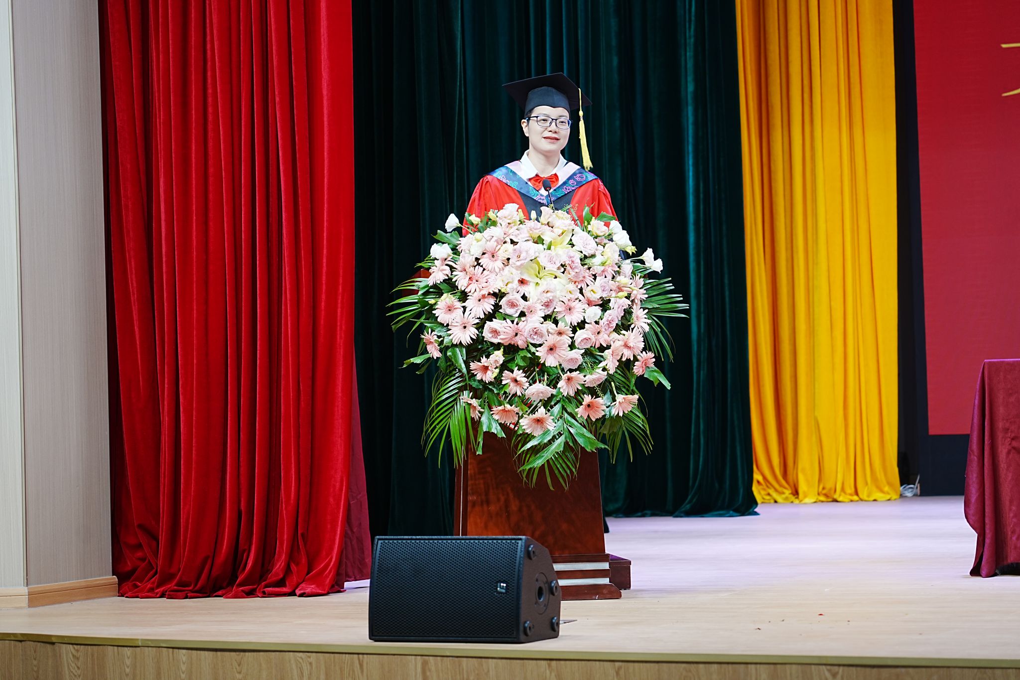 在庄严的国歌声中,毕业典礼正式拉开了帷幕。
