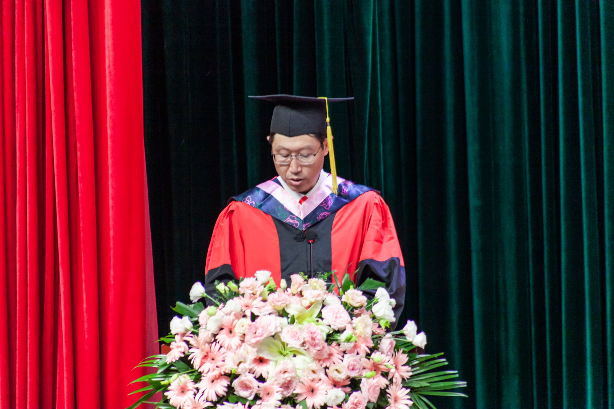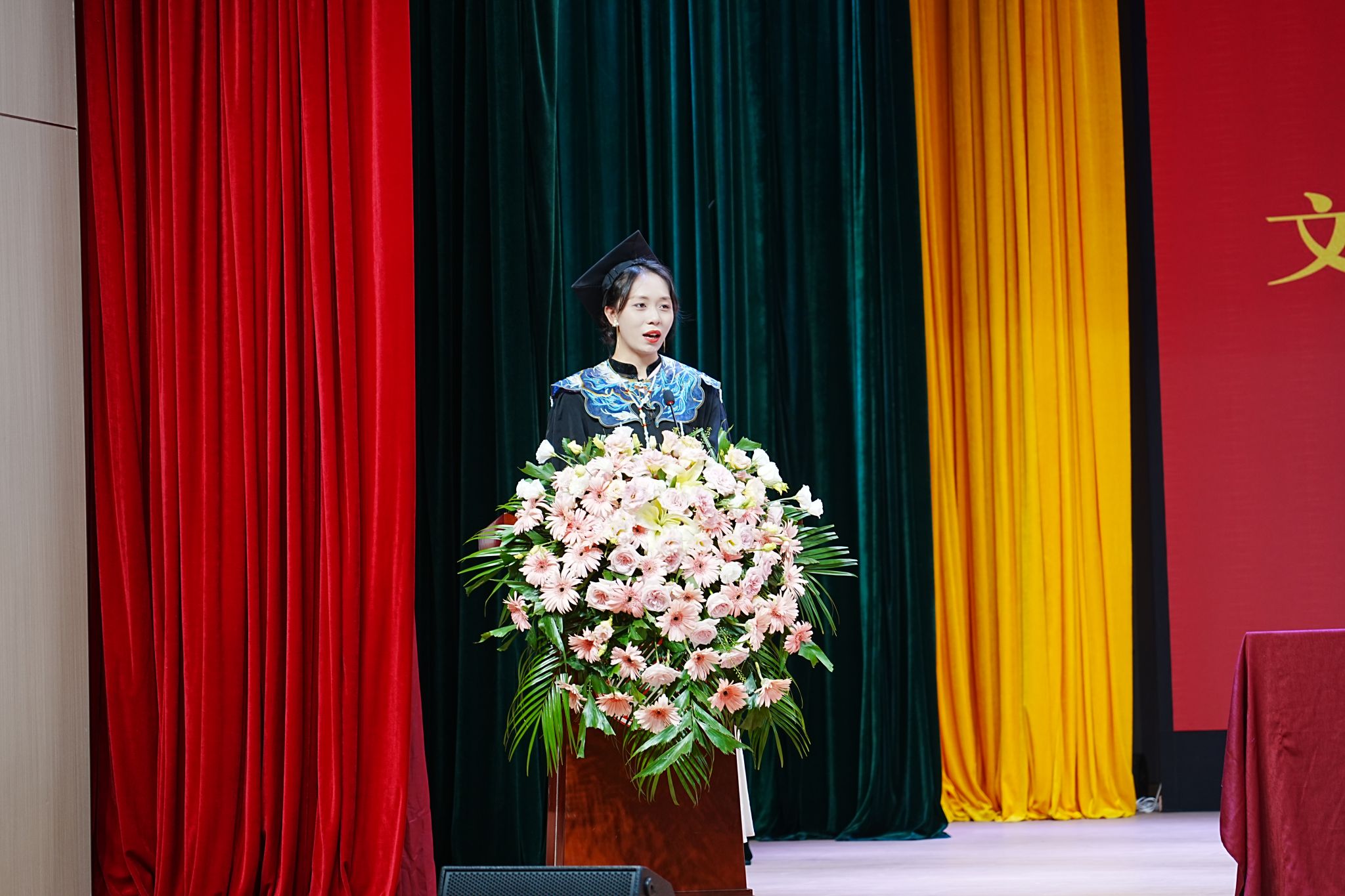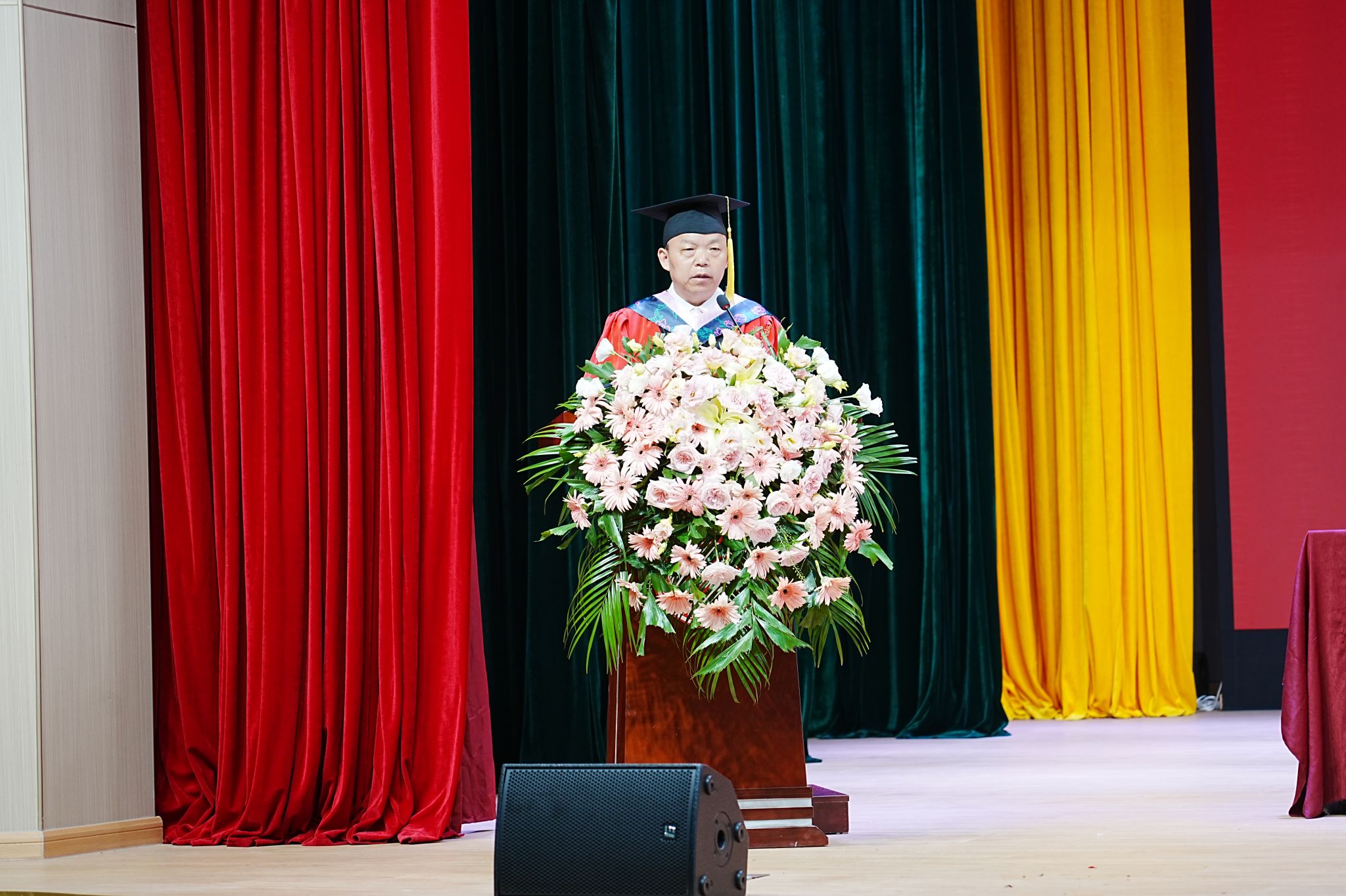 在庄严的国歌声中,毕业典礼正式拉开了帷幕。