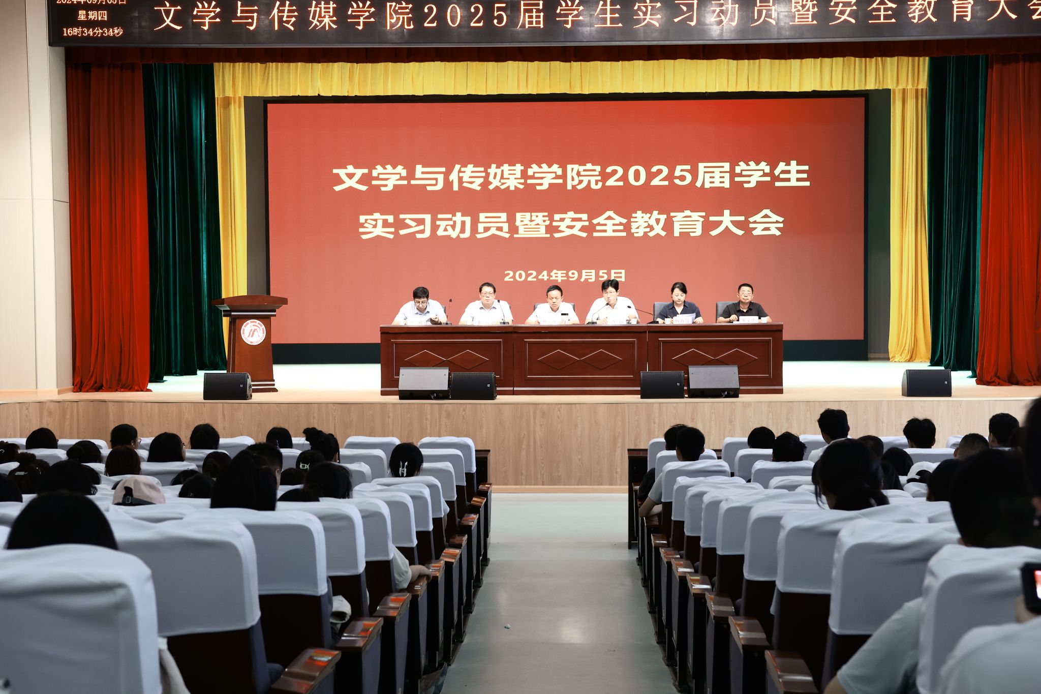 2024年9月5日下午,pp电子游戏平台网站2025届学生实习动员暨安全教育大会在学校大礼堂举行,学院领导班子全体成员、毕业班辅导员及2025届全体学生参加了大会,大会由教学副院长朱云主持。