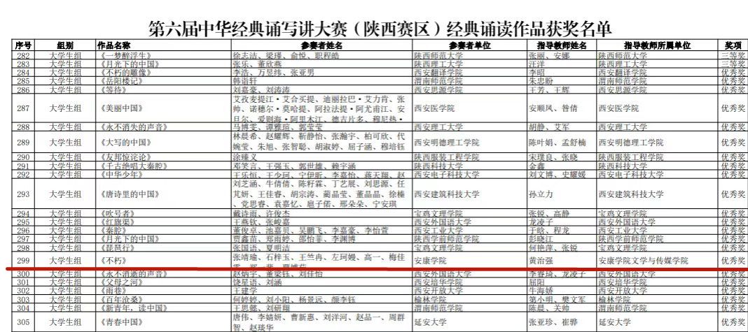 第六届中华经典诵写讲大赛(陕西赛区)比赛结果日前揭晓,pp电子游戏平台官网报送的经典诵读作品《不朽》获得经典诵读比赛优秀奖。