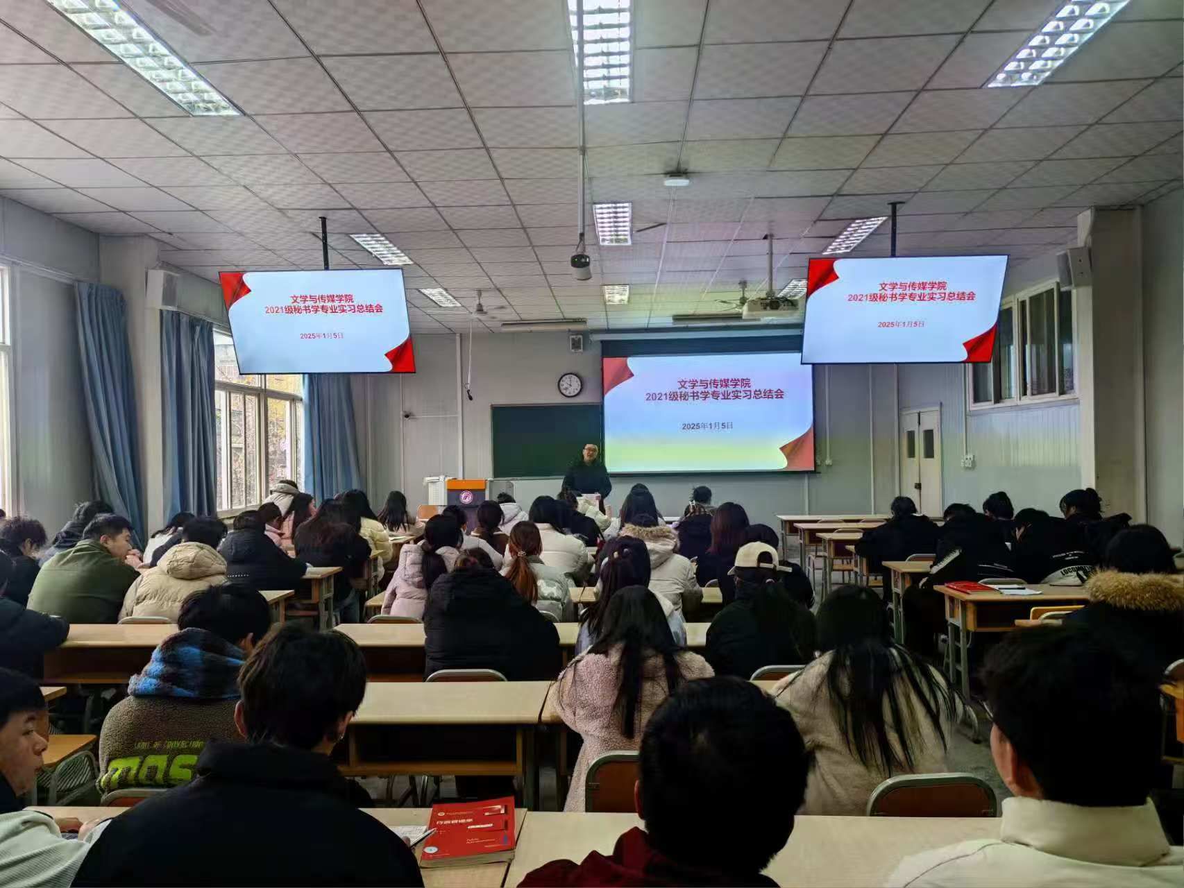 2025年1月5日,pp电子游戏平台网站在1026教室召开秘书学专业实习总结会,副院长朱云、实习带队教师胡少山以及2021级、2022级秘书学专业学生参会,会议由实习生李欣窈主持。