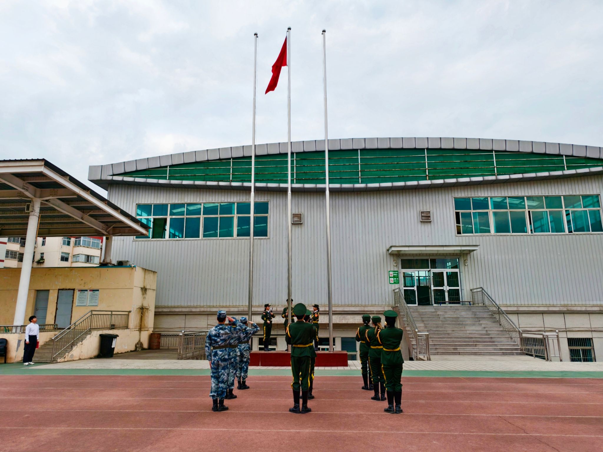 为厚植家国情怀、凝聚奋进力量,4月7日,pp电子游戏平台网站在学校田径场举行升旗仪式。辅导员刘言军及2024级汉语言文学专业100余名学生代表参加活动,共同见证五星红旗冉冉升起的庄严时刻。