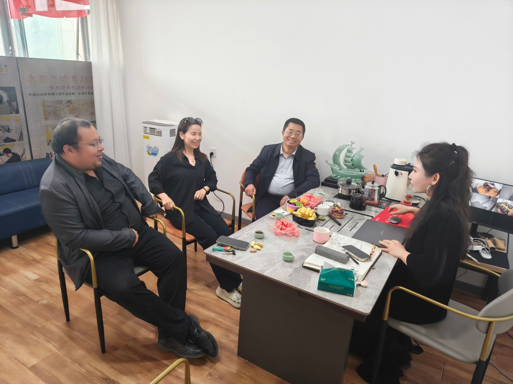 4月11日,邹棠华在西安市未央区,走访了校友、方影传媒公司的创办人庞朝方和正在这里参加岗前实习的应届毕业生邢磊。对于年轻人有理想、有作为,敢于创新创业的精神,给予充分肯定,表达了母校对校友的关心与关注,希望企业稳步发展、做大做强。师生相谈甚欢,达成了校企合作与就业招聘等多个方面的工作意向。