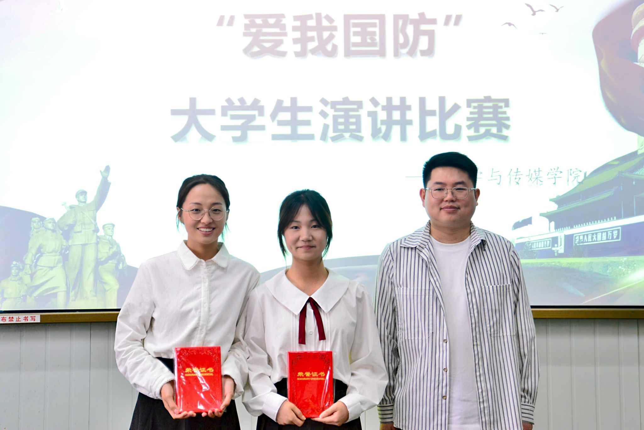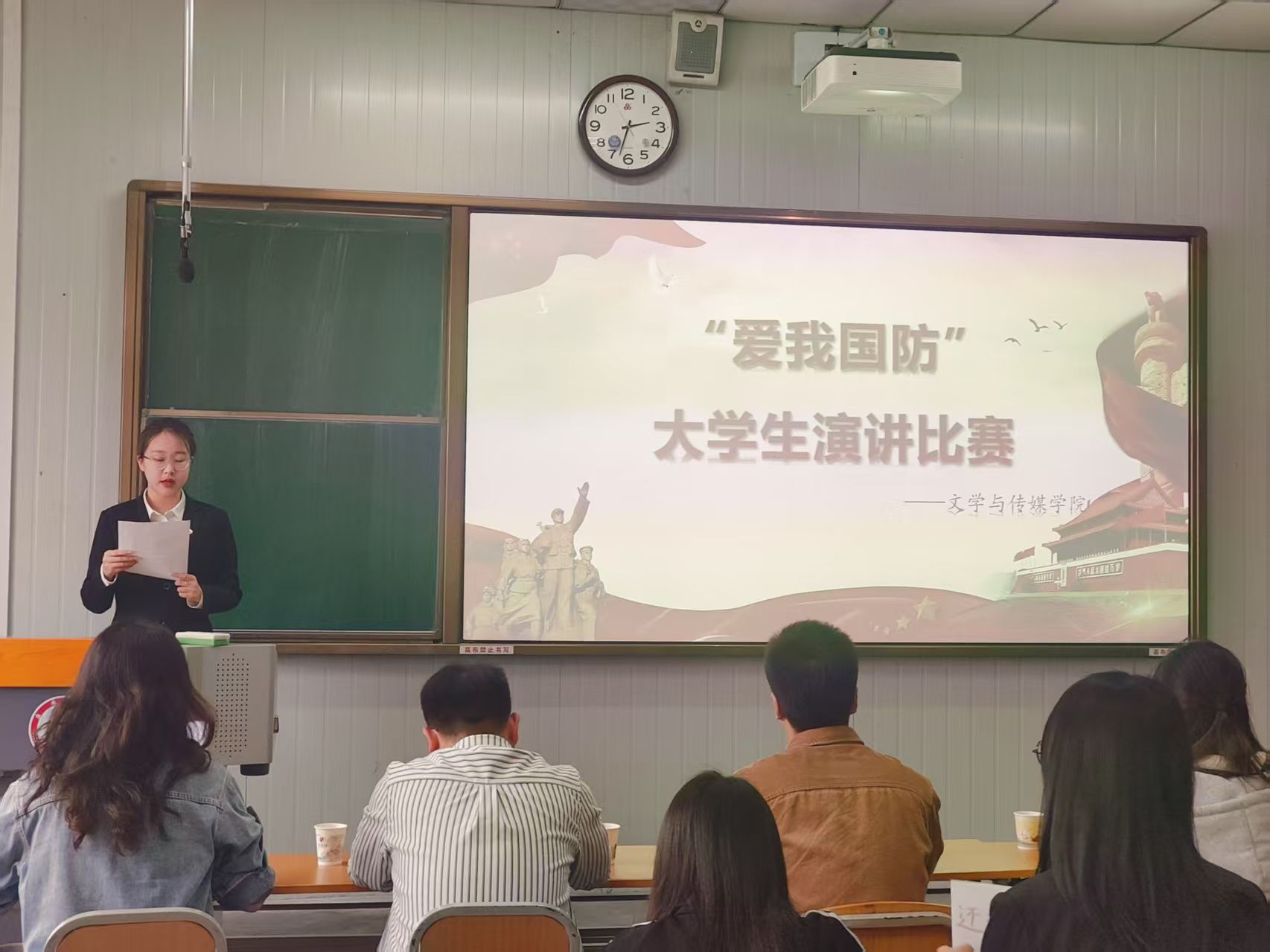 2025年4月11日下午,由pp电子游戏平台网站演讲辩论社和播音主持社共同举办的“爱我国防”主题演讲比赛在江南校区十号教学楼1036报告厅举行,演讲辩论社指导老师余珊、播音主持社指导老师黄治强、pp电子游戏平台网站团总支书记彭潇、辅导员刘言军、喻言出席活动并担任比赛评委,学院各专业100余名学生观看了本次比赛。