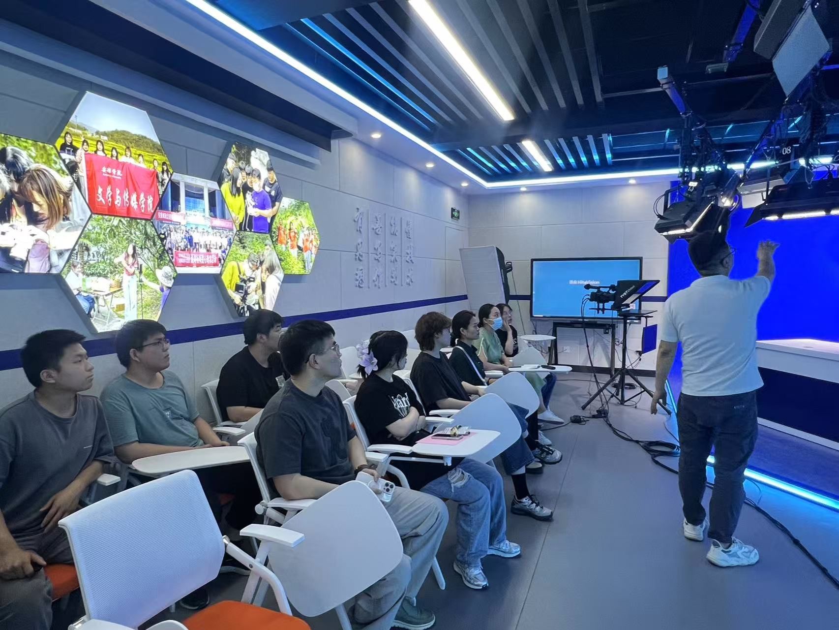 随后,实验教学主任张建涛围绕实验室可匹配的实验项目及实训课程展开讲解。他结合网络与新媒体专业的特点和教学需求,介绍了多个具有针对性和实用性的实验项目,以及如何将这些项目融入到日常的实训课程中。此外,他还对实验室内的硬件设备进行了详细说明,包括各类设备的性能、用途和操作要点,让师生们对实验室的资源有了更全面的了解。