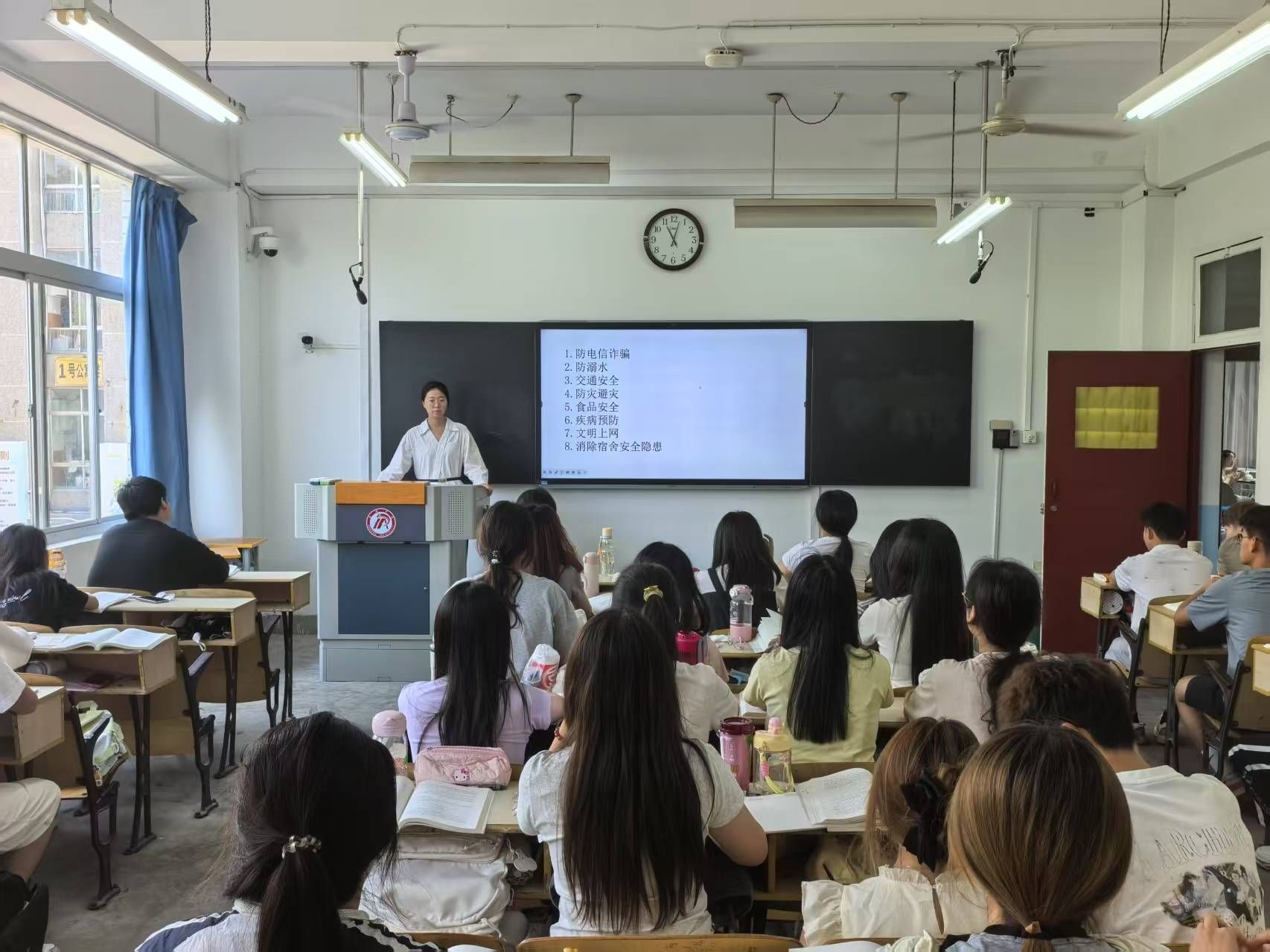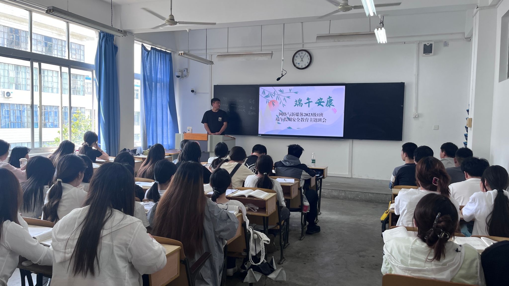 班会上,老师们通过图片和视频,向同学们介绍端午节的起源、传说以及各地丰富多彩的节日风俗,同学们在深厚的传统文化氛围中,进一步增强文化认同感和民族自豪感。在安全教育环节,老师们围绕人身安全、财产安全、交通安全、网络安全等多个方面,结合实际案例讲解假期需要注意的安全事项。针对外出游玩的同学,重点强调遵守交通规则、避免前往危险区域;对于留校学生,提醒注意宿舍用电安全;提醒同学们要提高网络安全意识,警惕电信诈骗,避免陷入各类网络陷阱;遵守学校规定,保持通讯畅通,及时向老师和家长报备行程。