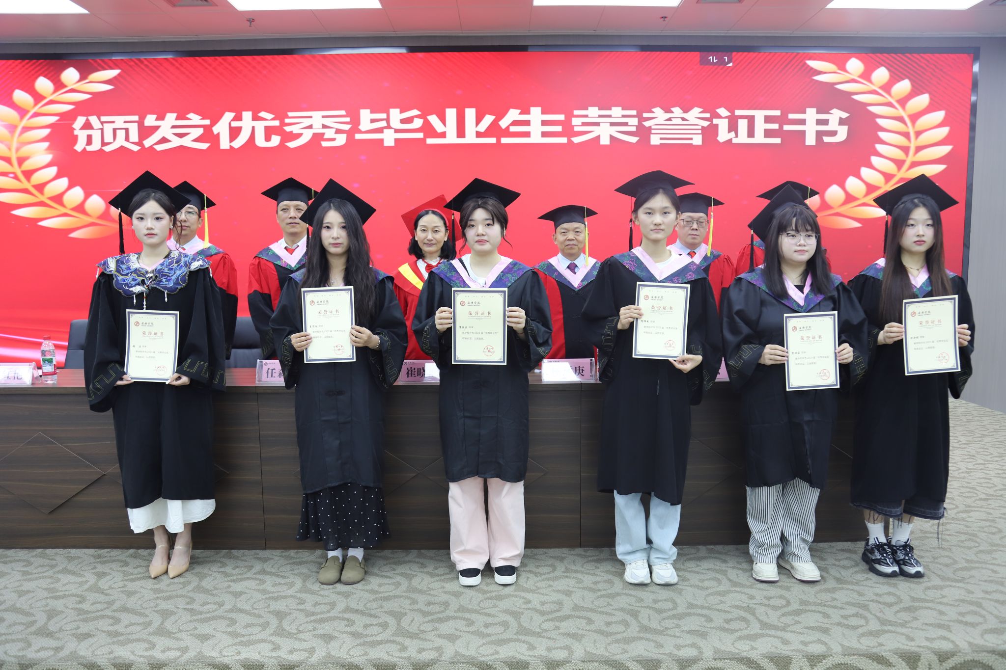导师们为校级优秀毕业生颁发荣誉证书,为毕业生代表颁发了毕业证书,同时颁发了本届毕业生的校友联络员聘书。