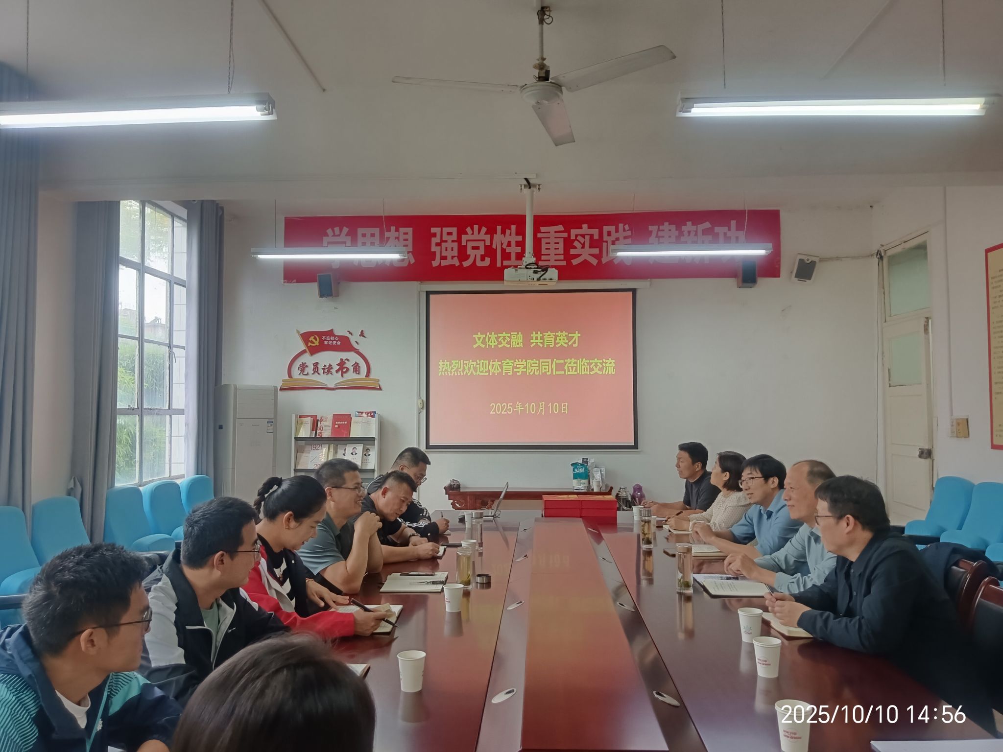 为促进院系协同发展,增强合作实效,共同提升办学质量,10月10日,体育学院党总支书记韩晔一行到访pp电子游戏平台网站,围绕党建工作、科学研究与教学管理等主题开展深入交流。pp电子游戏平台网站党总支副书记任森龙、副院长朱云、曹刚及部分教师代表参加座谈。