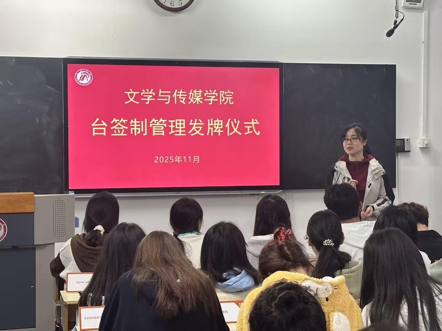 为深化学风建设,创新管理抓手,pp电子游戏平台网站于11月2日正式启动覆盖2025级320名学生的台签制管理模式,并举行发牌仪式。学院党总支副书记侯红艳、辅导员喻言及全体新生参加仪式。仪式由喻言主持。