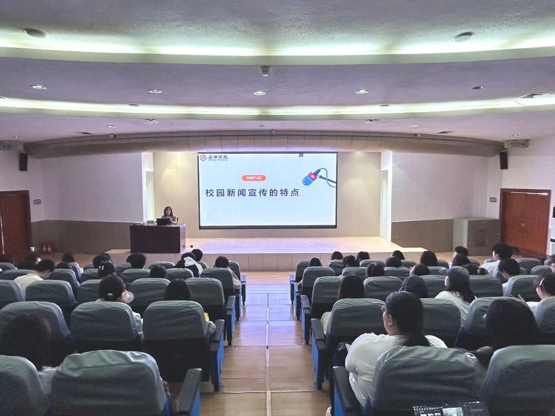 她指出,学生干部作为校园信息传播者、舆论引导者和校园文化建设的参与者,在工作中要发挥“喉舌”作用,积极宣传校园正能量,关注舆论热点和思想动态,化身舆论“稳定器”、情绪“调节器”,同时,要通过自身的言行影响身边人,积极为校园文化活动建言献策。针对校园新闻信息宣传受众群体年轻化、内容多元化、传播渠道多样化、时效性强、语言风格鲜明和双向对话需求的特点,她运用具体生动的优秀宣传案例向同学们介绍校园舆论引导的策略:一是将“官方通告”转化为“朋友对话”,二是利用“意见领袖”引导舆论,三是利用图片和短视频降低理解成本,进行可视化传播,四是遵循“3C原则”,避免陷入舆论引导的误区。最后,她希望学生干部在实践中能不断提升团队管理能力、沟通协调能力、信息处理能力、基础写作能力、新媒体工具使用能力等必备技能,并善于通过校内外培训学习、优秀宣传案例模仿、国家智慧教育公共服务平台等线上共享课程提升综合素质,练就“锐眼”,学习“睿言”,做好校园青春发言人。