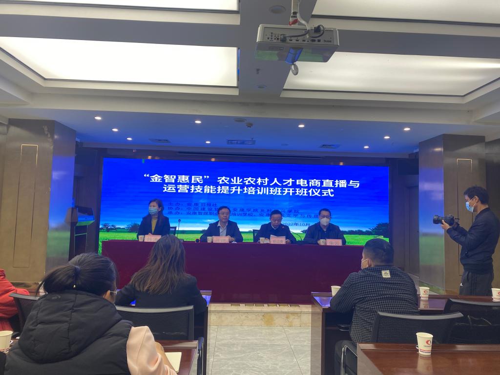 10月27日,由我校乡村振兴学院、pp电子游戏平台网站与中国建设银行、安康日报社联合举办的“金智惠民”农业农村人才电商直播与运营技能提升培训班在安康景泰国际商务酒店会议室顺利举行。安康日报社社长王建,我校pp电子游戏平台网站院长杨运庚、继续教育学院副院长韩涛出席了开班仪式。开班仪式由pp电子游戏平台网站副院长朱云主持。