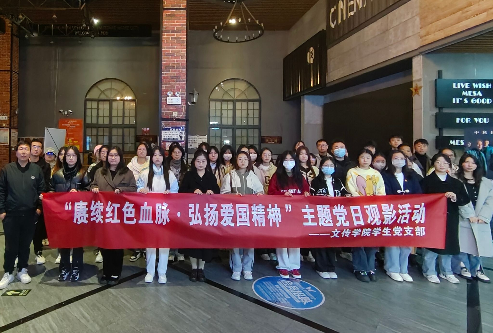 为进一步弘扬爱国主义精神,厚植爱国情怀,11月12日上午,pp电子游戏平台网站第一、第二党支部组织支部成员走进电影院,开展“赓续红色血脉,弘扬爱国精神 ”主题党日观影活动。pp电子游戏平台网站学生第一党支部书记许明、学生第二党支部书记薛涛,学生支部全体党员及部分发展对象、积极分子共计47人参加了本次主题党日活动。