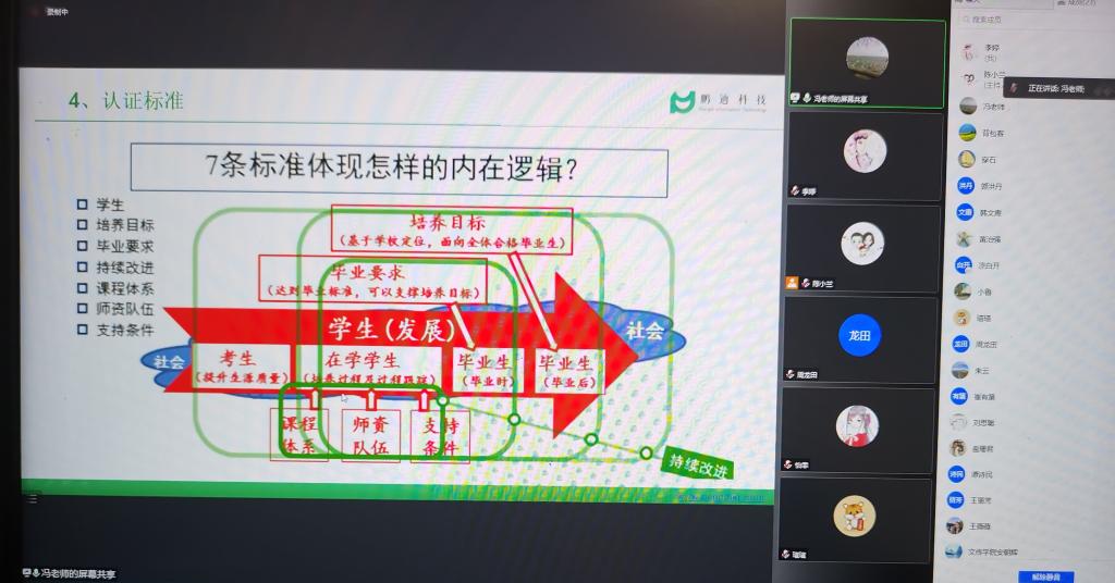 导航痕迹 首页 > 师范专业认证 > 活动新闻 > 正文 政策文件 活动新闻 师范生技能大赛 pp电子游戏平台网站召开师范专业培养方案及课程大纲修订线上培训会 发布人:pp电子游戏平台网站 发布日期:2022年04月06日 阅读次数: 4月1日晚,pp电子游戏平台网站组织全体教师在腾讯会议平台参加了师范专业培养方案及课程大纲修订线上培训会,会议由教学副院长李婷主持,认证专家冯彬老师为主讲人。 冯老师首先讲了专业认证理念体系与内涵,主要包括认证工作来源与进展、认证的三大理念、以学生为中心的教学模式、认证标准、认证底线、面向产出的机制、认证申请工作流程和评审要点等内容。接着重点以现代汉语课程教学大纲为例,详细解读了课程目标与毕业要求的关系,课程考核评价方式及评价标准的编写细则。 此次会议通过生动案例的讲解,让学院教师对师范专业认证中培养方案和课程大纲的修订有了更深的认识,为接下来的具体修订工作提供了切实可行的指导。 撰稿/摄影/韩文霞 审核/李婷 发布/崔瑜