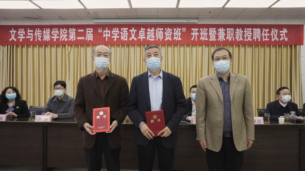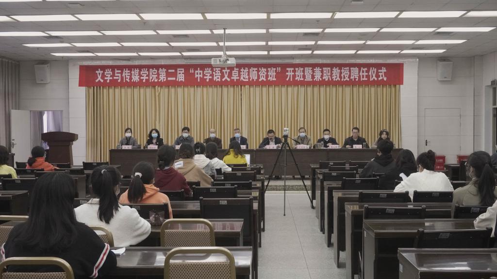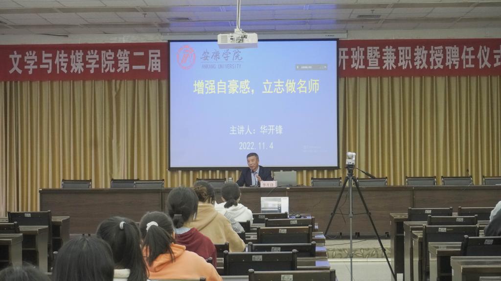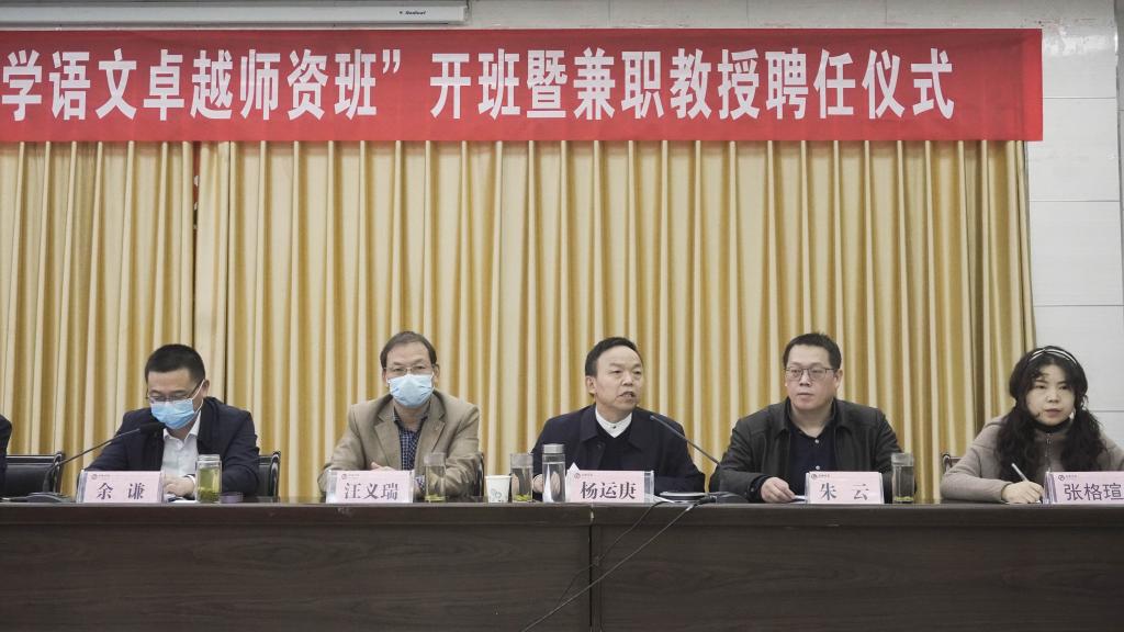 2022年11月4日下午,为持续优化汉语言文学专业的师范生培养质量,实现人才培养与行业发展的紧密对接,pp电子游戏平台网站第二届 “中学语文卓越师资班”开班暨兼职教授聘任仪式在图书馆六楼报告厅成功举行。副校长余谦、教务处处长汪义瑞、行业导师暨我校优秀校友华开锋和程时进、pp电子游戏平台网站领导班子成员及班主任出席了开班仪式。开班仪式由pp电子游戏平台网站副院长朱云主持,分会场1018和2315教室通过腾讯会议同步观看了全程内容。