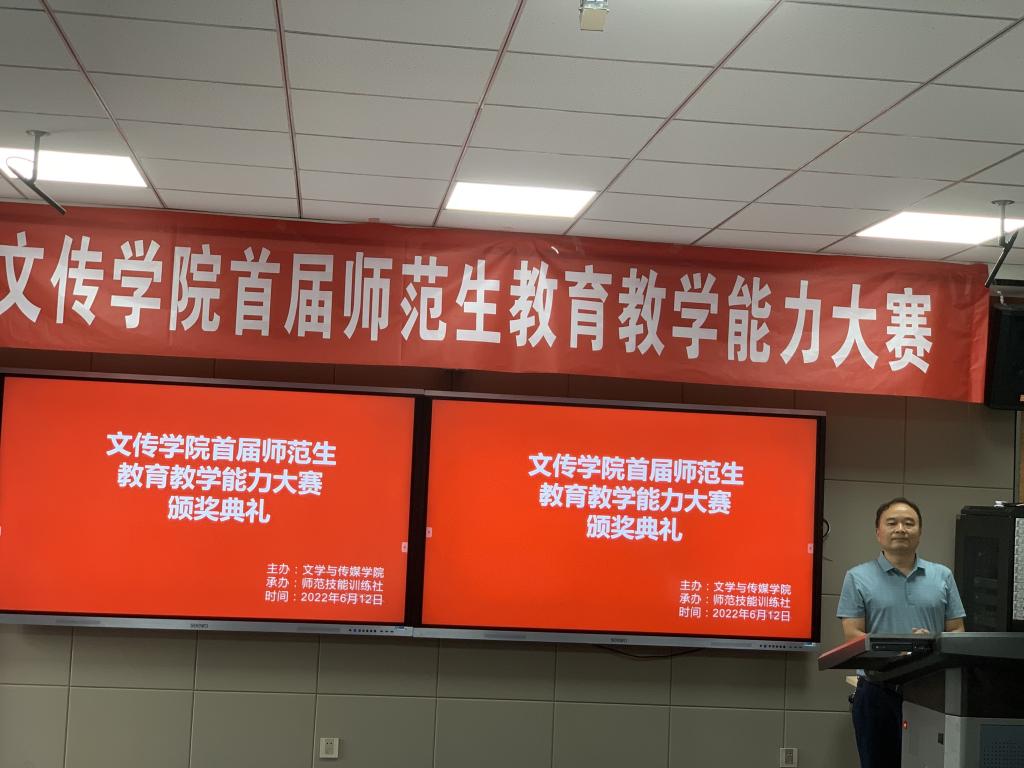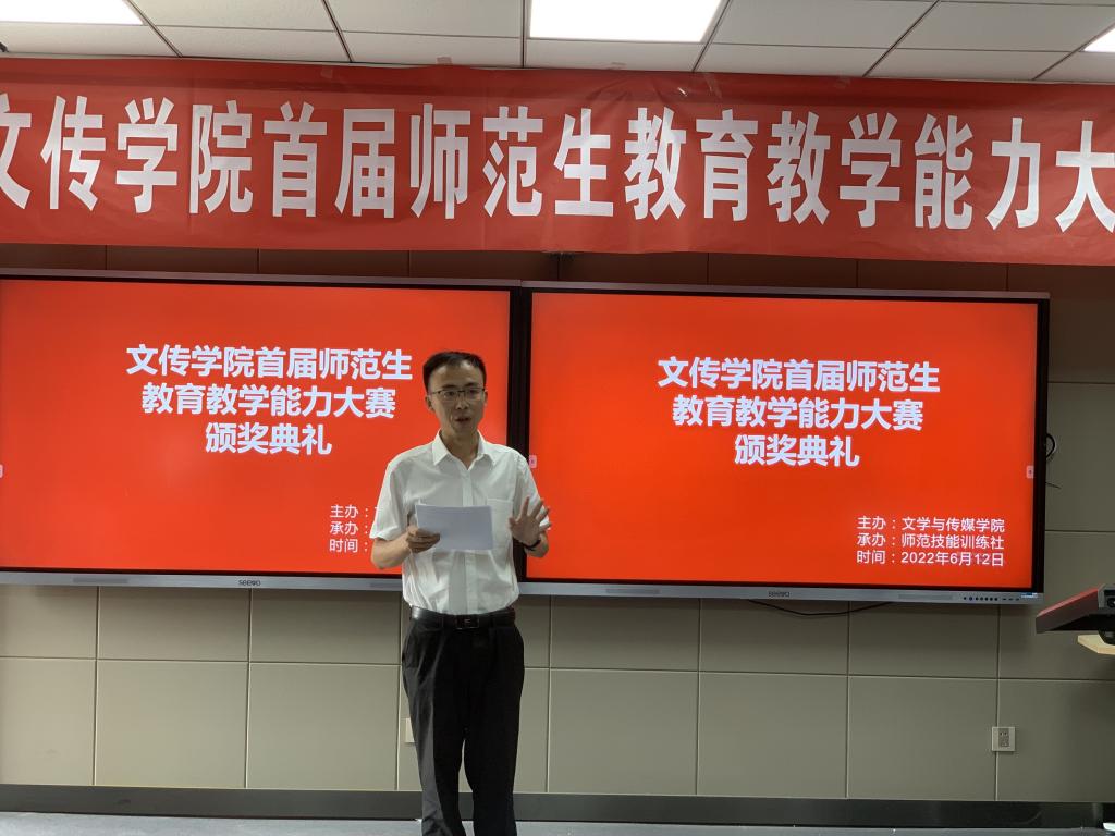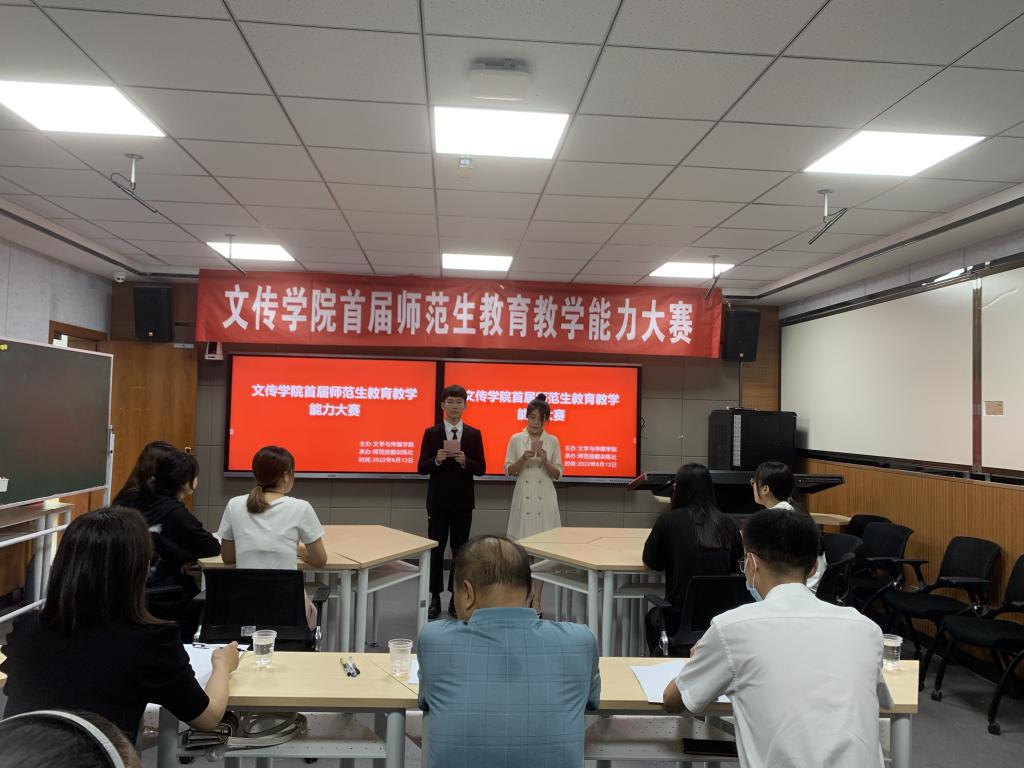 2022年6月12日,由师范技能训练社承办的pp电子游戏平台网站首届师范生教育教学能力大赛在学校师范生职业技能训练中心4204教室隆重举办。本次大赛特邀安康市汉滨区教研室高级教研员李玉恒老师,汉滨初级中学校长助理、教务主任全东老师,pp电子游戏平台网站教学督导邸玲老师共同担任评委。pp电子游戏平台网站党总支书记芦伟、副院长朱云、党总支副书记杨海蓉、汉语言文学系主任韩文霞、语文学科教学论任课教师、师范技能训练社指导教师张格瑄在现场观摩比赛。本次大赛采用网络同步直播的方式进行,学院其他教师和学生通过校园网观摩了比赛过程。