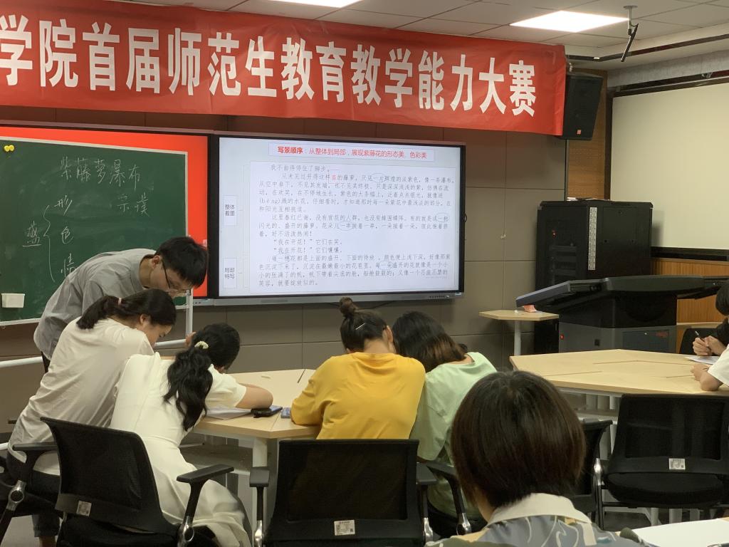 首届师范生教育教学能力大赛对接陕西省师范生教育教学技能大赛,包括粉笔字书写、即席演讲、说课、模拟授课四项竞赛内容。