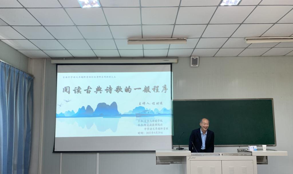 劳动节前夕,按照“中学语文卓越师资班”人才培养计划方案,4月29日下午4点,pp电子游戏平台官网特邀安康市汉滨高级中学副校长、特级教师、陕西省名师培养对象实践导师程时进老师在1018教室开展了题为“阅读古典诗歌的一般程序”的专题讲座活动,活动由中学语文卓越师资班班主任张格瑄老师主持。